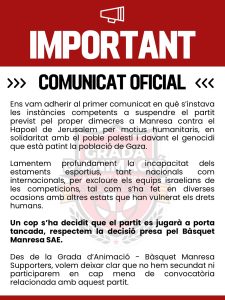 Comunicat Oficial de la Grada d’Animació 14 d'octubre de 2025 Post navigation Previous Previous post: Reptes, il.lusions, dificultats i una sola afició Deixa un comentari Cancel·la les respostesL'adreça electrònica no es publicarà. Els camps necessaris estan marcats amb *Comentari * Nom * Correu electrònic * Lloc web Desa el meu nom, correu electrònic i lloc web en aquest navegador per a la pròxima vegada que comenti. The reCAPTCHA verification period has expired. Please reload the page. Δ Entrades anteriors Reptes, il.lusions, dificultats i una sola afició 27 de setembre de 2025 Ja som a la Final de la 46a Lliga Nacional Catalana de Bàsquet 20 de setembre de 2025